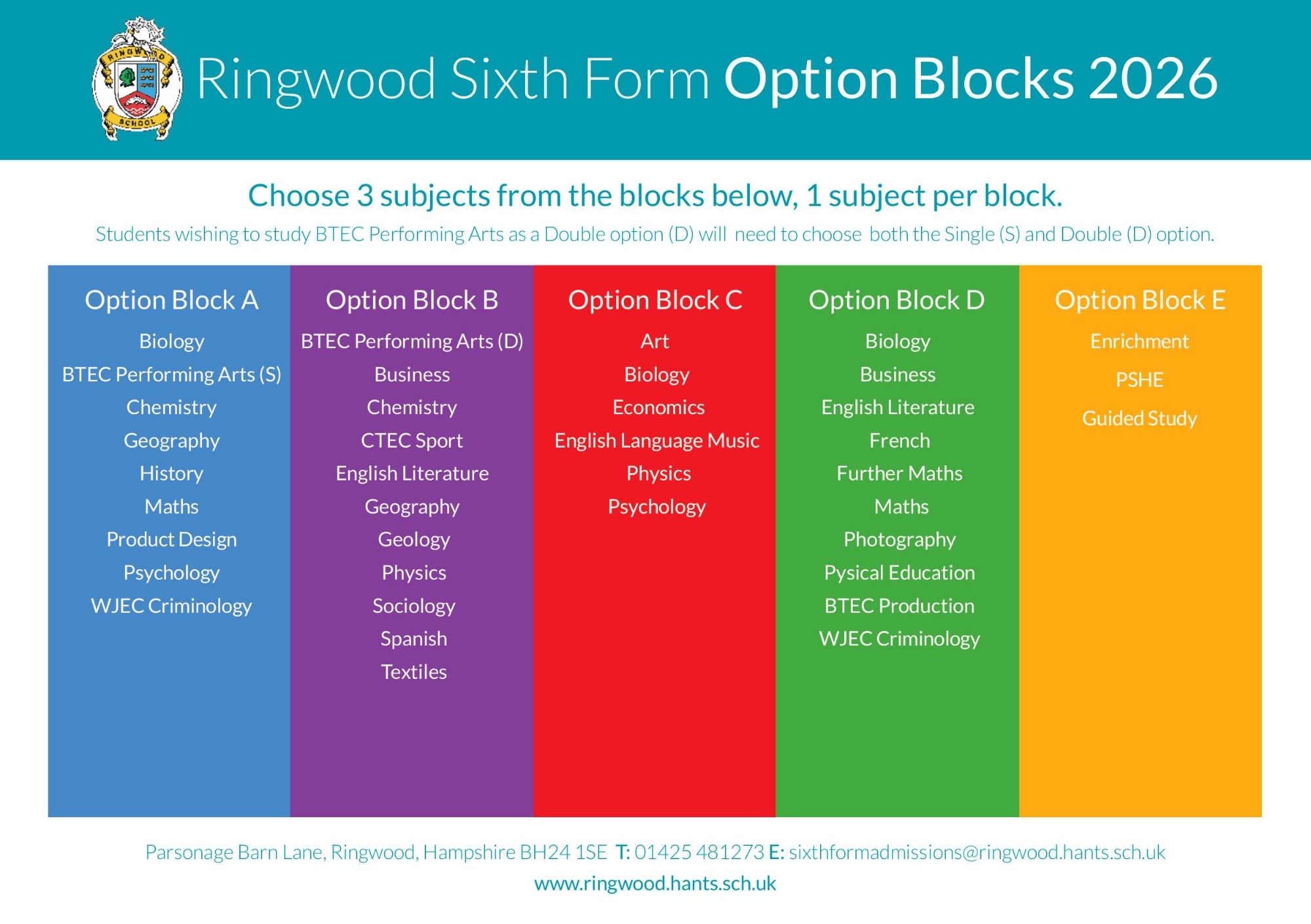 - Enables students to choose 3 subjects from the 33 different academic and vocational courses that we offer. These are designed to stretch students and prepare them for university, an apprenticeship or employment.