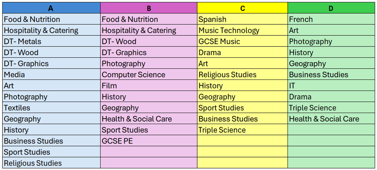 The variety of academic and vocational options enable students to tailor their choices to their preferred route. Advice is always available to ensure the best combination of subjects is selected, as students move up through the school.