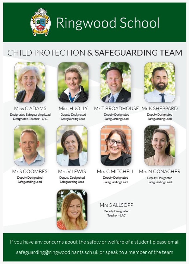 If you are concerned about yourself or a member of our school community, please get in touch so we can support you. You can Email us: safeguarding@ringwood.hants.sch.uk